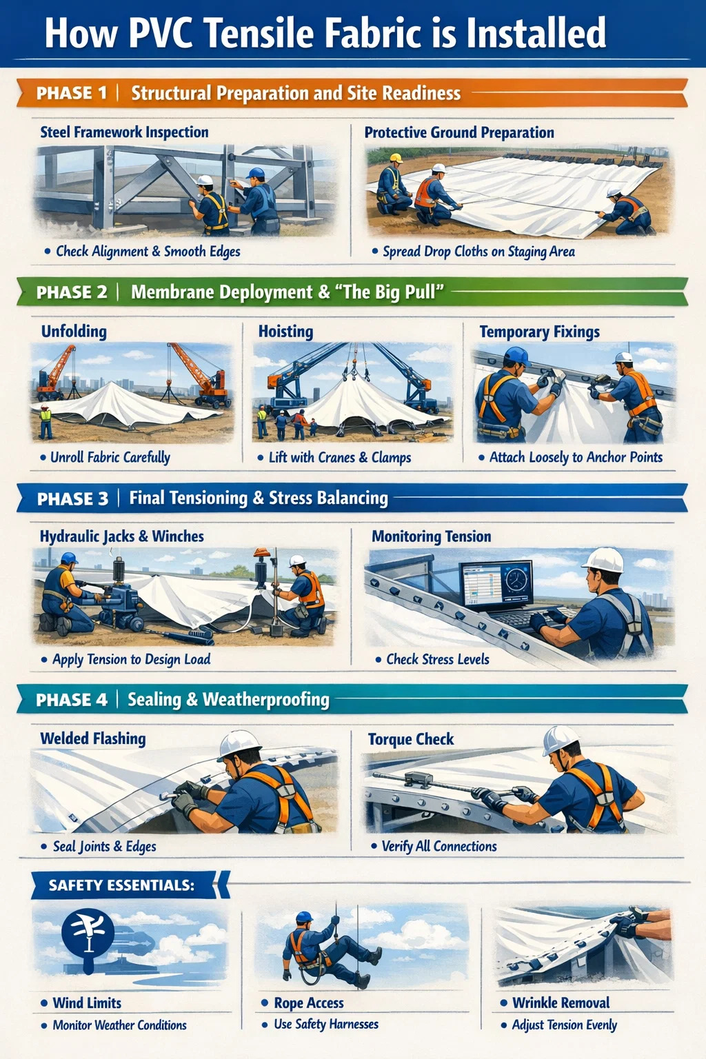 Het directe antwoord: hoe PVC-trekweefsel wordt geïnstalleerd